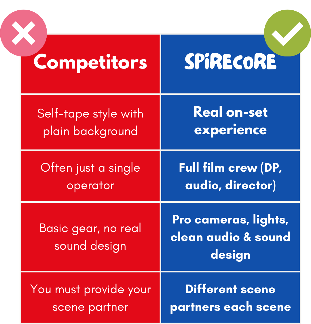 ✓ 3 professional actors supplied by SPIRECORE